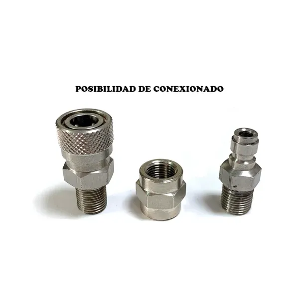 Para poder acoplar diferentes boquillas o latiguillos para la carga de tu carabina PCP.