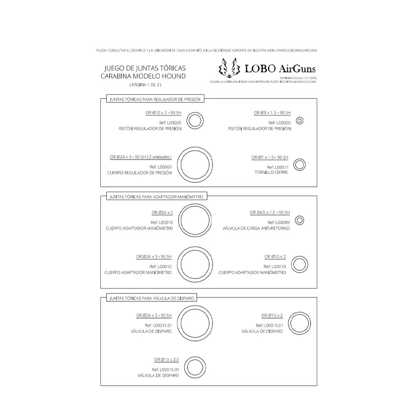 El juego completo de todas las juntas tóricas para montar la carabina.