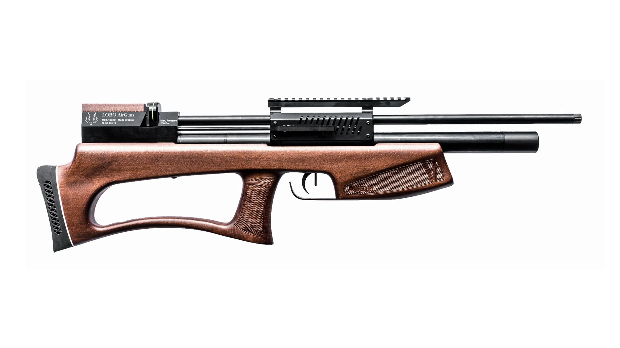 Hound, la carabina de aire comprimido estilo Bullpup de LOBO AirGuns. Una carabina PCP de dimensiones reducidas y altas prestaciones. ¡Puede que sea la Bullpup más silenciosa del mercado!