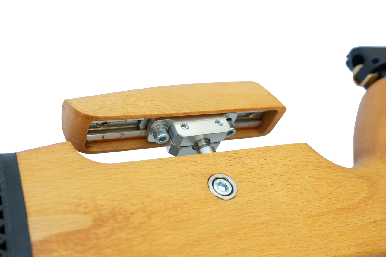Construida con la misión de obtener la máxima precisión con nuestros reguladores de presión y un cañón Lothar Walther, además de poder ajustar todo el encare de la carabina para aportar el mayor aplomo en múltiples posiciones.